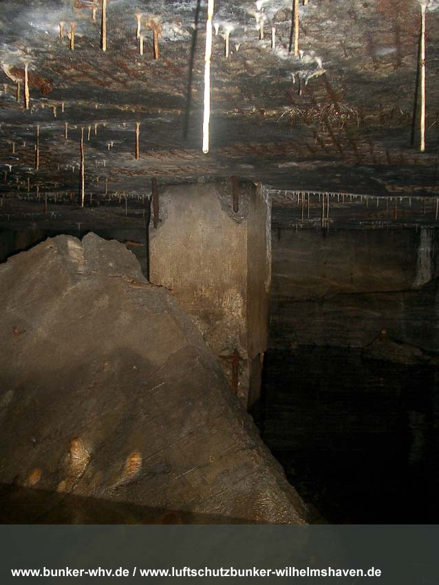 Die Spannbetonträger waren ursprünglich höchstwahrscheinlich Rammpfähle für Uferbefestigungen im Hafenbereich. An der Südwestseite der Bunkerdecke fehlen die Träger. Sie wurden in der Nachkriegszeit entfernt. Dort ist die Ursprungsdecke des Tiefbunkers erkennbar. Das Bauwerk steht mittlerweile komplett unter Wasser.