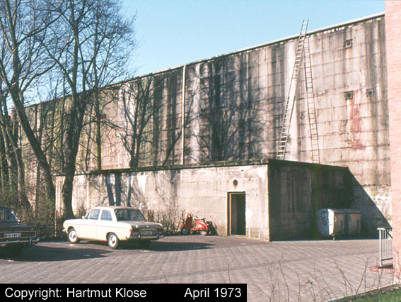 Aufnahme des Hochbunkers hinter der Mozartstraße. Auch dieser Bunker ist vorhanden. Aufnahme aus dem Jahre 1972.