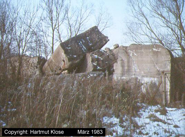 Aufnahmen des gesprengten Regelbau-Bunkers R 661 auf dem Gelände der ehemaligen UTO-Werft / Westwerft. Der Bunker ist heute im fast vollkommen überschütteten Zustand noch immer vorhanden. Aufnahmen aus den Jahren 1981 und 1983.