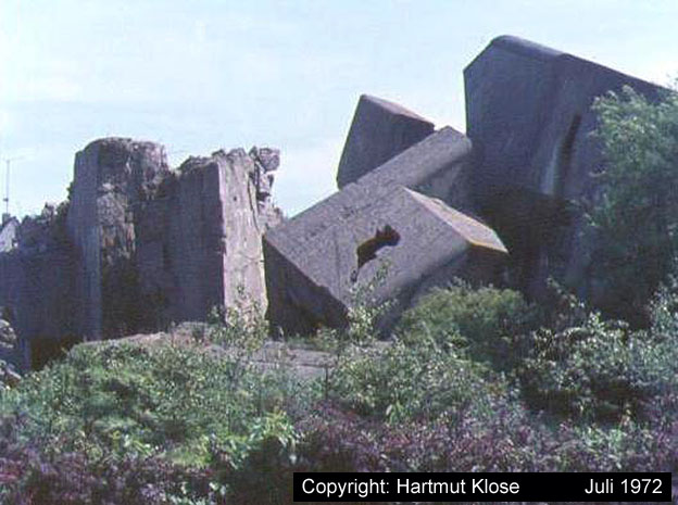 Aufnahmen des gesprengten Truppenmannschaftsbunkers 750 am heutigen Schütteweg. Der Bunker wurde entfernt. Heute befinden sich dort Wohnhäuser. Aufnahmen aus dem Jahre 1972.