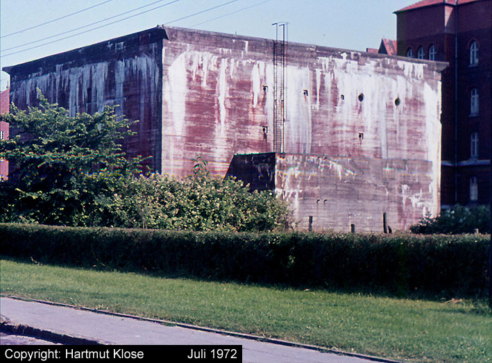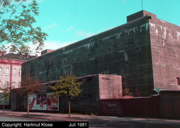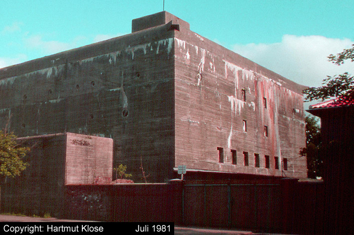 Aufnahme des Hochbunkers Einigungsstraße. Der Bunker ist noch immer vorhanden. Aufnahme aus dem Jahre 1972.