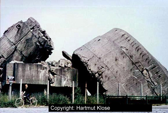 Aufnahmen des gesprengten Zombeck-Luftschutzturmes Rheinstraße. Die Ruine ist noch heute vorhanden. Aufnahmen aus den 1960er Jahren und 1986.
