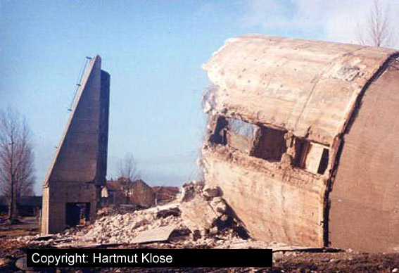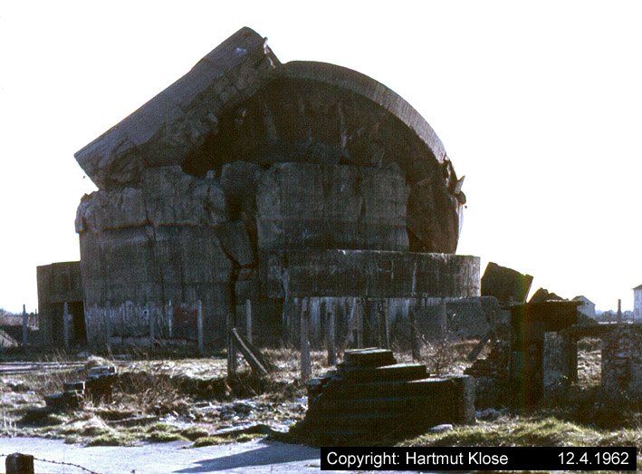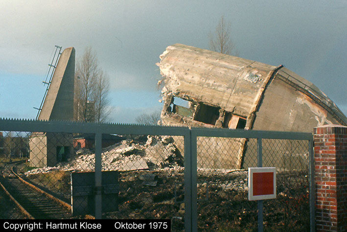 Aufnahmen des gesprengten Luftschutzturmes am Bahnhof Sande. Der Turm ist in diesem Zustand noch immer vorhanden. Er dient dem Alpenverein als Kletterturm. Aufnahmen aus dem Jahre 1966.