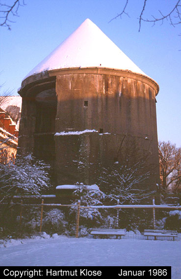 Aufnahmen des Luftschutzturmes an der Bentinckstraße. Der Turm ist noch immer vorhanden. Aufnahmen aus den Jahren 1972, 1985, 1986 und 1998.