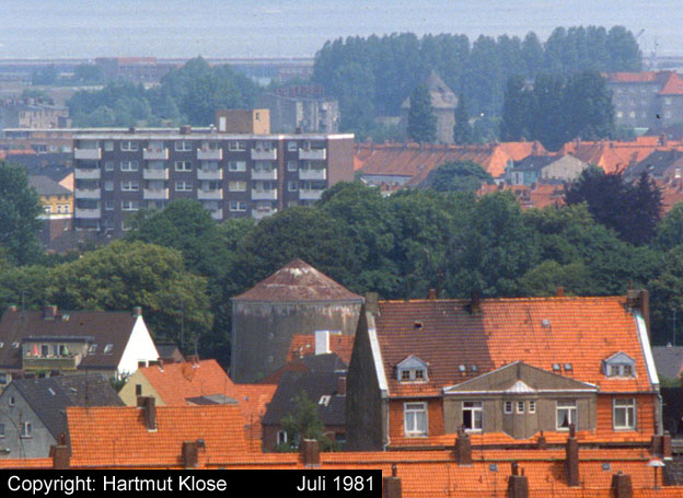 Aufnahmen des Luftschutzturmes der Bauart Dietel am Ostende der damaligen Ostfriesenstraße (heute Hannoversche Straße / Hannoverkai). Nach dem Krieg gesprengt wurde der Turm 1982 gänzlich beseitigt. Heute befindet sich dort Hafengewerbe. Aufnahmen aus den Jahren 1967, 1972 und 1981.