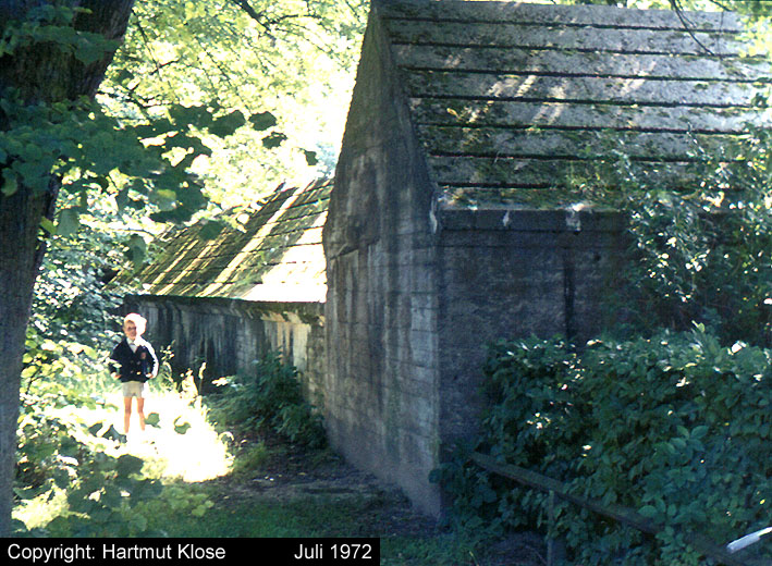 Aufnahme des Deckungsgrabens ("Zickzackbunker") in Middelsfähr. Der Graben ist noch immer vorhanden. Lediglich die Splitterschutzwände der Eingänge wurden entfernt. Aufnahme aus dem Jahre 1972.
