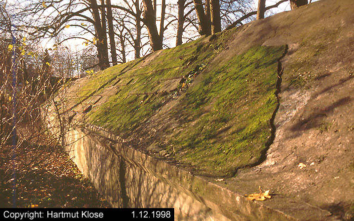 Aufnahme des Deckungsgrabens Botanischer Garten Nord. Der Graben ist noch immer vorhanden. Aufnahme wohl aus den 1990er Jahren.