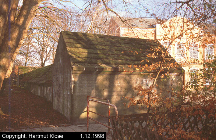 Aufnahme eines kleinen Rundturmes an der Marienstraße. Der Bunker ist noch vorhanden, aber inzwischen vollkommen hinter Efeu verdeckt. Aufnahme wohl aus dem Jahre 1997.