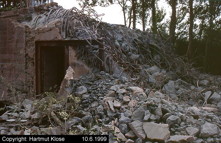 Aufnahmen des Schleusentorbunkers 4 der ehemaligen 3. Einfahrt während des Teilabrisses. Heute befindet sich genau dort die erweiterte Straßenführung. Aufnahmen aus dem Jahre 1999.